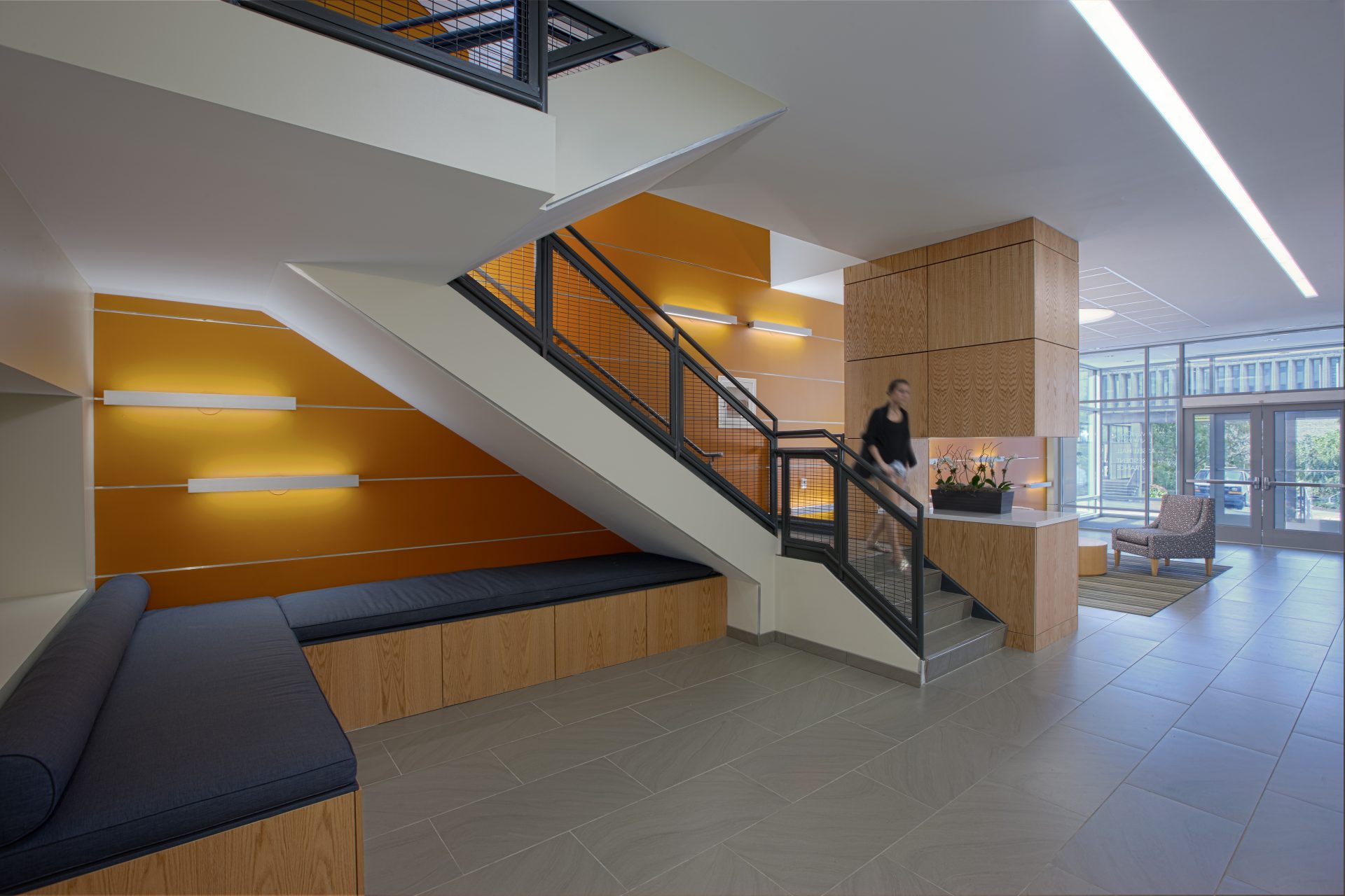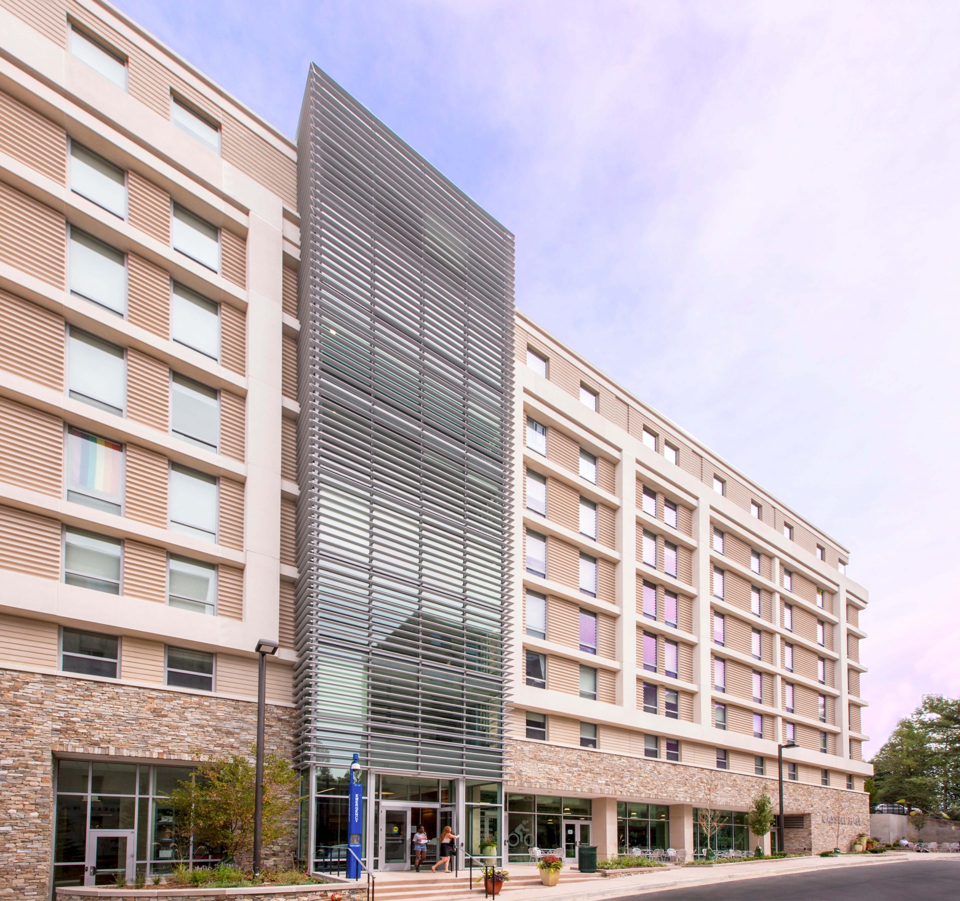 Providing an attractive, durable, and healthy living environment for AU’s student body, this 365-bed residence hall offers suite-style living complemented by wellness features, green strategies and finishes throughout, meeting the University’s ambitious sustainability goals. In addition to six floors of living, there is a ground floor fitness/wellness center that serves the entire North Campus residential neighborhood.