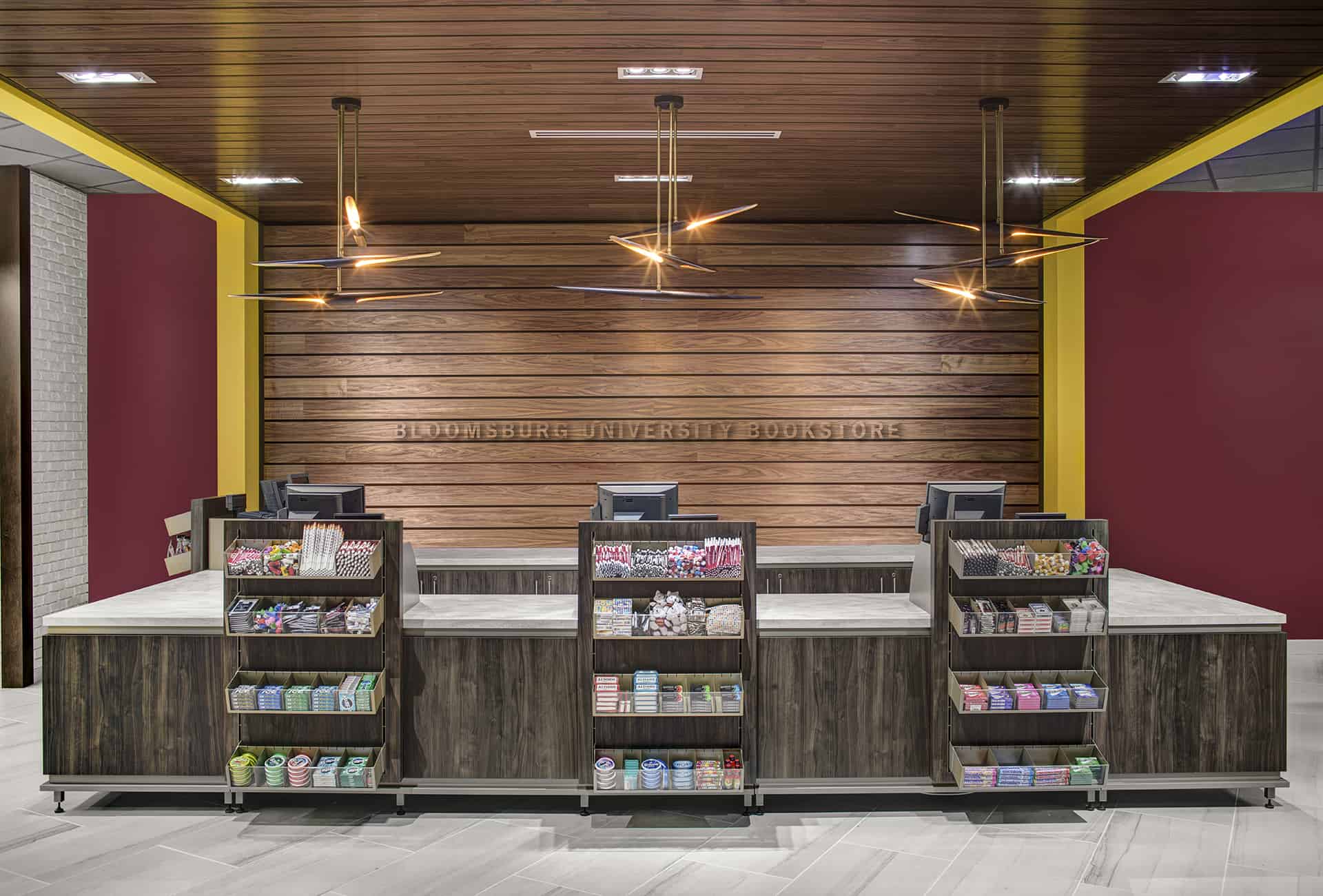 With this campus store, Bloomsburg wanted to create a dynamic and flexible retail experience that would excite students and visitors. Mirroring the University’s core attributes of “inspired, diverse, and engaged,” the customer experience is orchestrated before even entering the store with the modern iconic storefront and inspiring window displays.