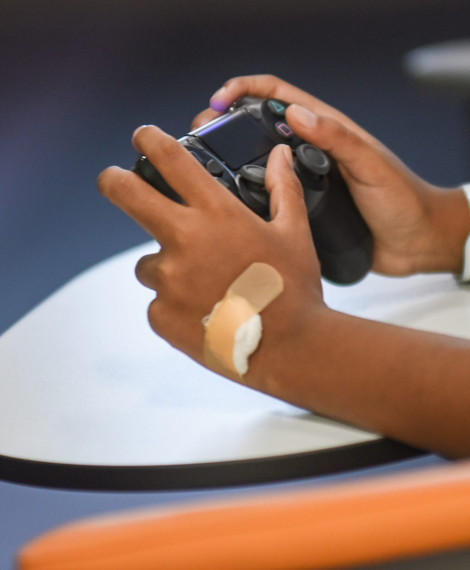 The renovation of this infusion space creates a positive distraction for patients through gaming, enhancing the overall infusion experience, and allowing family members to remain with them throughout the process.