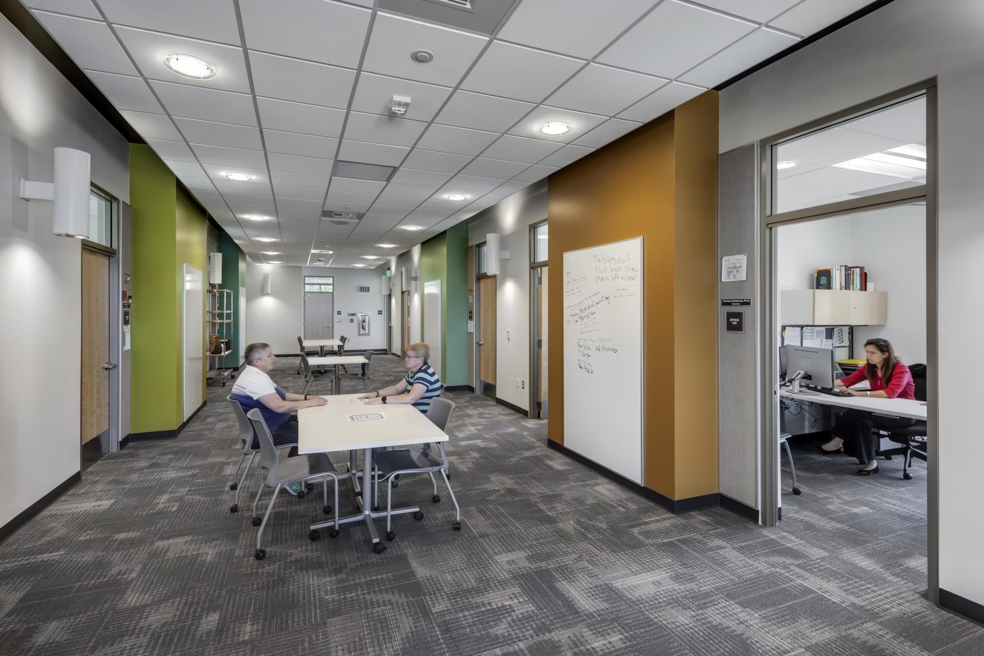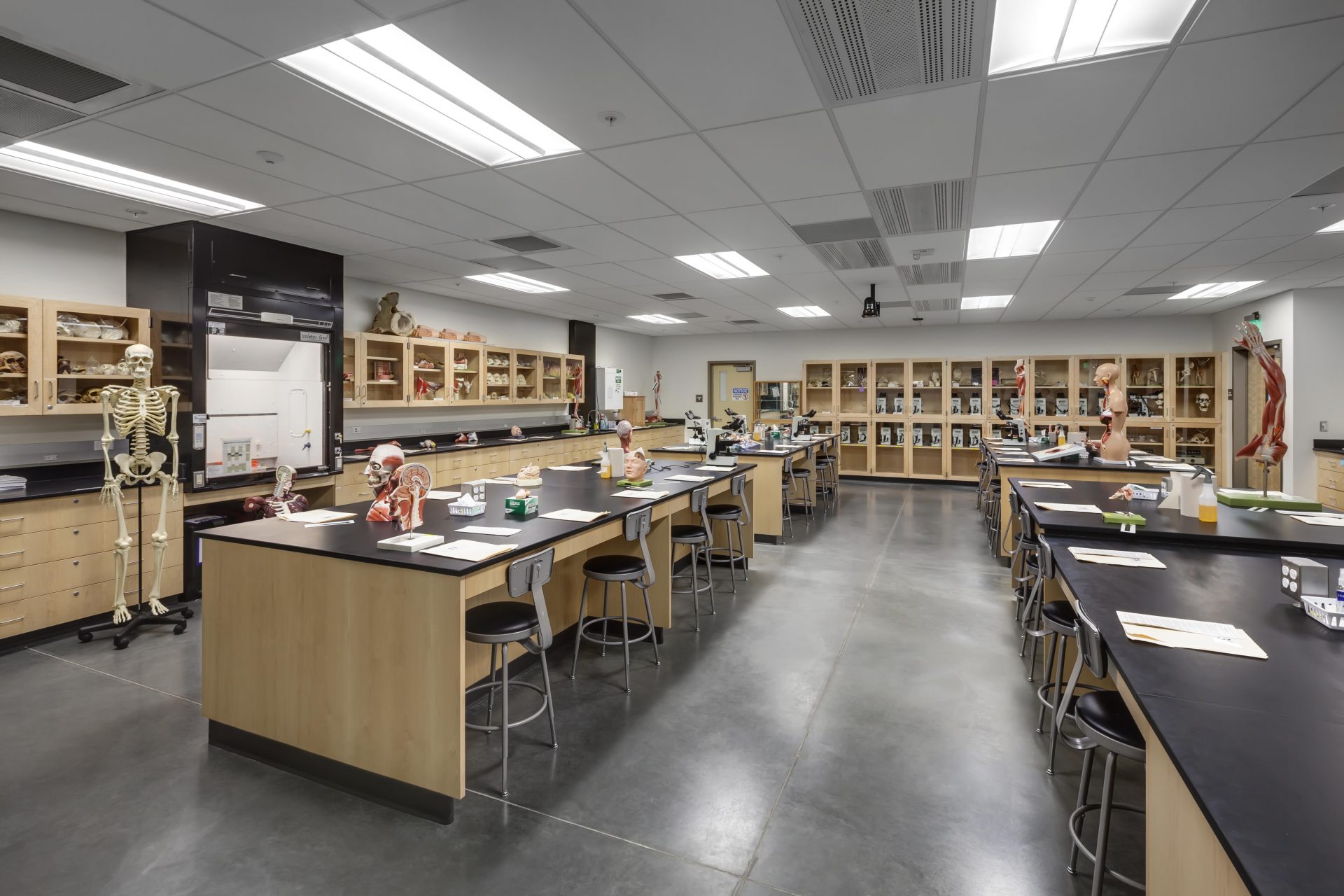 Focusing on STEM education, the building accommodates teaching laboratories and support spaces for the college's health science program, including courses in anatomy and physiology, chemistry, biology and microbiology. The interiors were intentionally designed to promote immersive and effective learning experiences, with a steel and glass window wall providing breathtaking views and a calming connection to the outdoors.