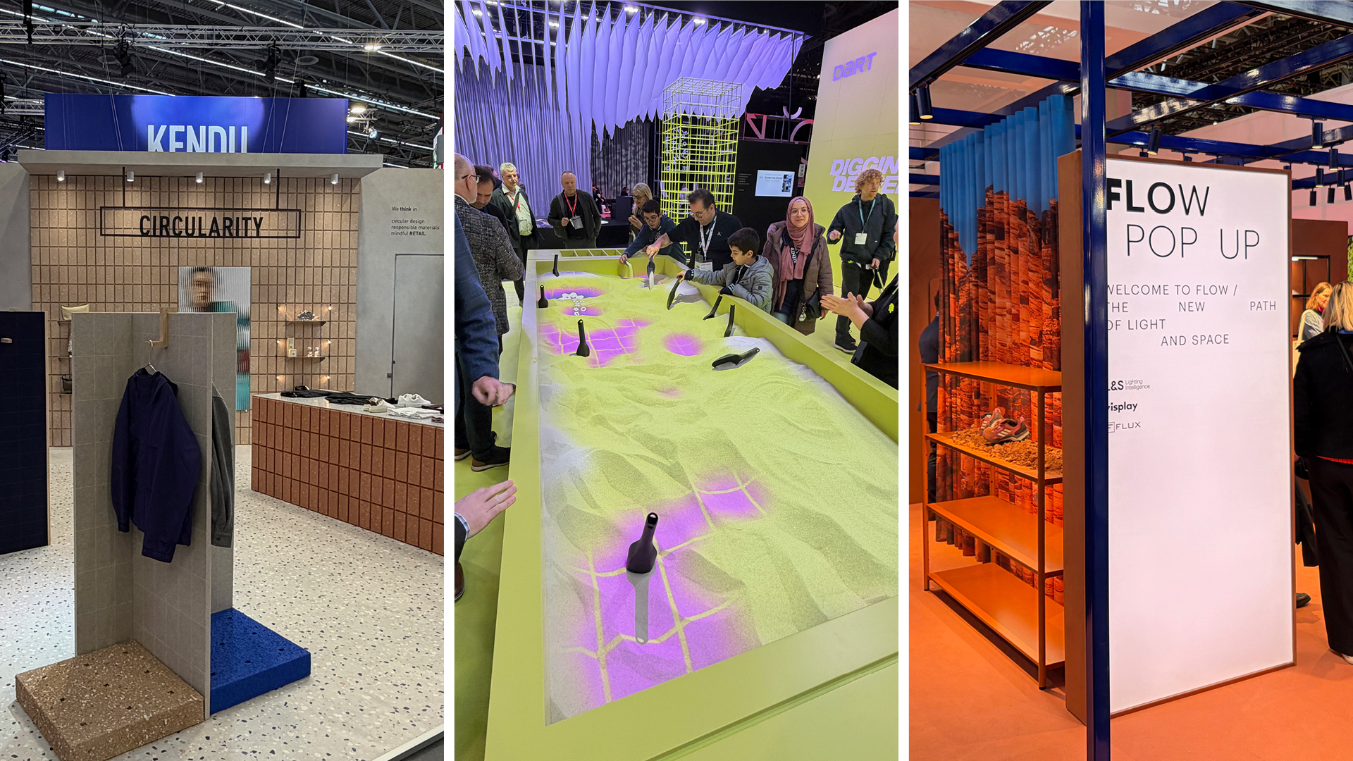 - Kendu offered a quiet but powerful vision of circularity in action, showcasing sustainably engineered products created from recycled fashion‑industry waste. Close by, &Go amplified this message through contrast: a vivid, almost confrontational red experience hub that reframed sustainability as something bold, emotive, and experiential rather than subdued. Together, they suggested a future where green design commands attention.