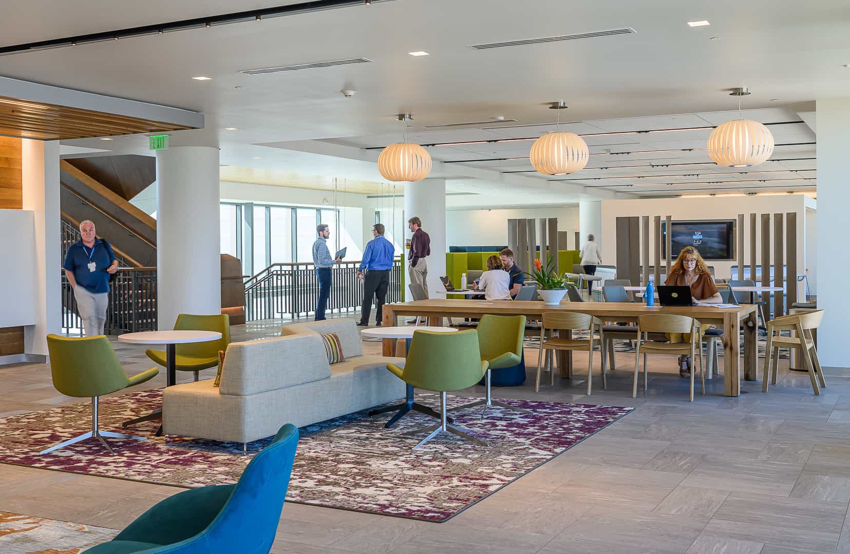 Our site design team developed a variety of outdoor spaces for employees to rest, relax, eat lunch, or get active.