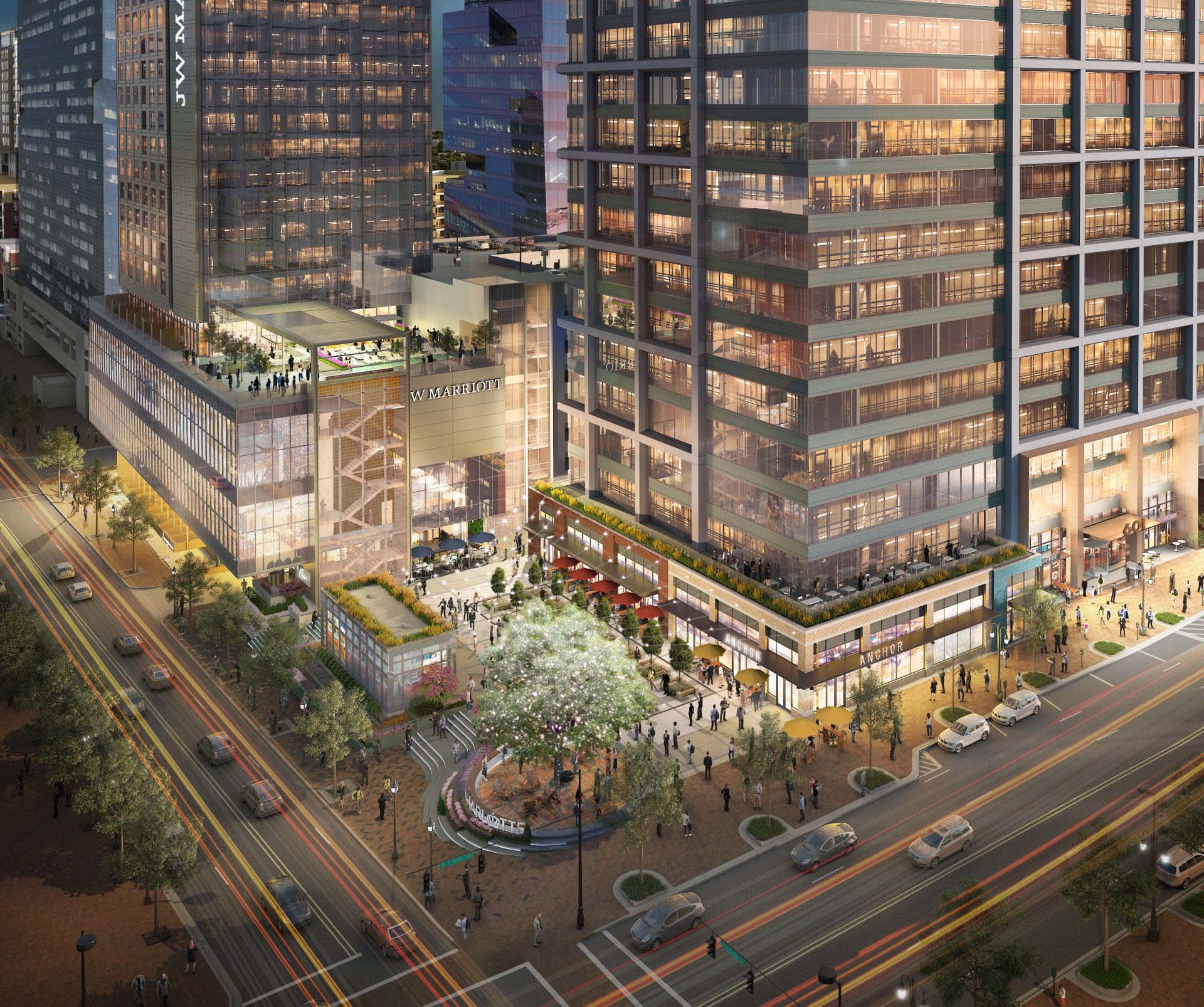 - Thoughtfully and successfully integrate office, retail, public space, hotel and a parking deck