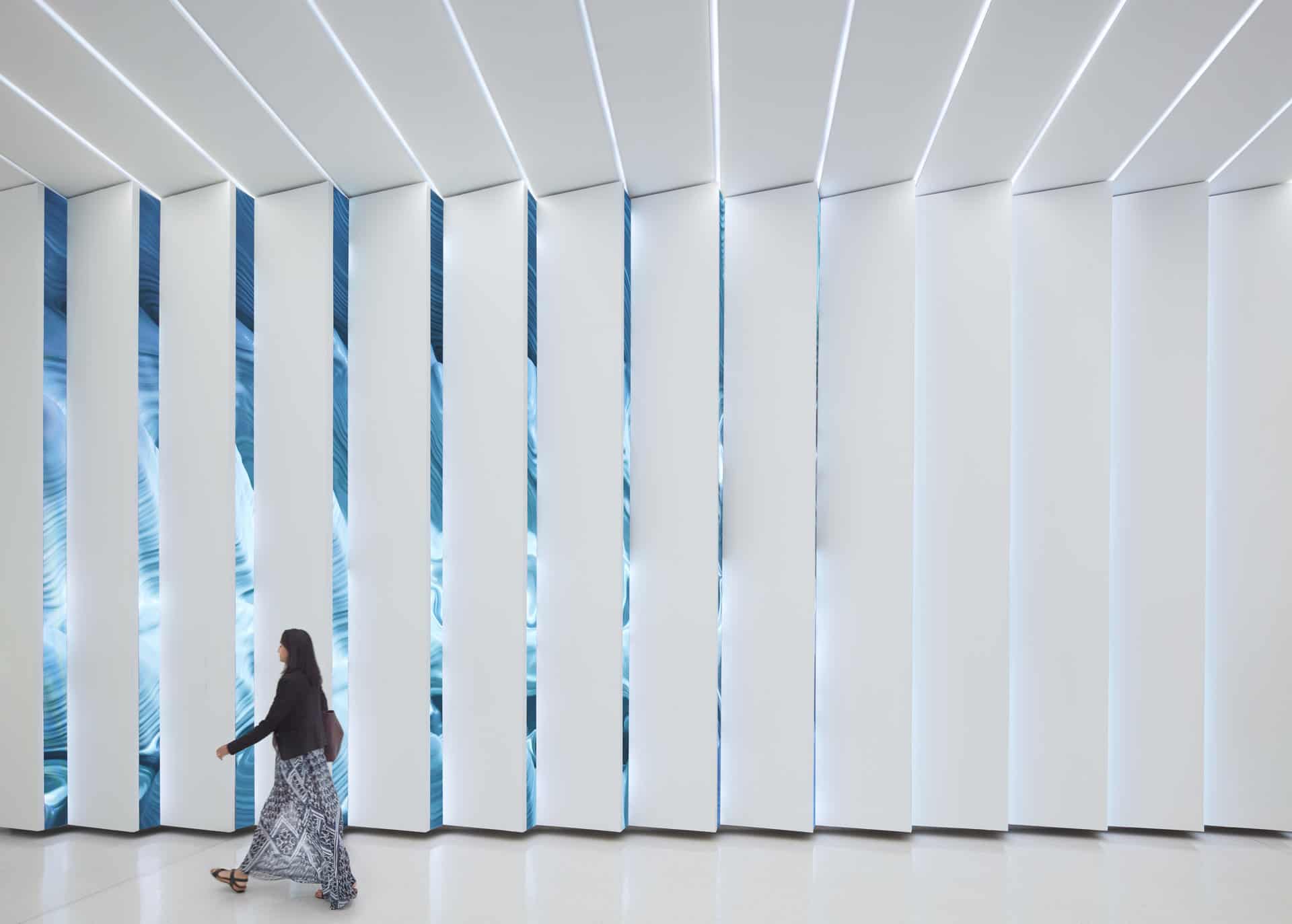 A stone exterior speaks to the site’s former location as a quarry, while the wood interior and accents pay homage to the timber company and LED screen art wall in the lobby communicates the digital nature of the environment.