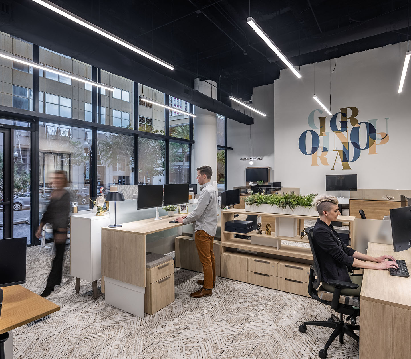 CI Group’s Orlando showroom transforms a high-visibility corner in the city’s urban core into a dynamic blend of workplace, product showcase, and community hub.