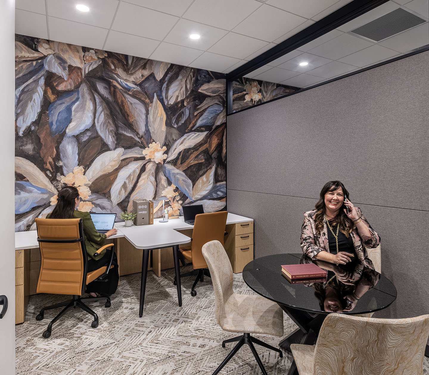To bring the vision to life, the design team focused on layering experiences throughout the space. A welcoming lounge and café at the entry create a natural transition into more private work areas, supporting both casual interaction and focused productivity. Glass partitions provide visual connection while maintaining privacy, and a mix of industrial finishes and rich materials reinforces the brand’s character. The layout supports day-to-day operations while remaining flexible for hosting events, community gatherings, and educational programs.