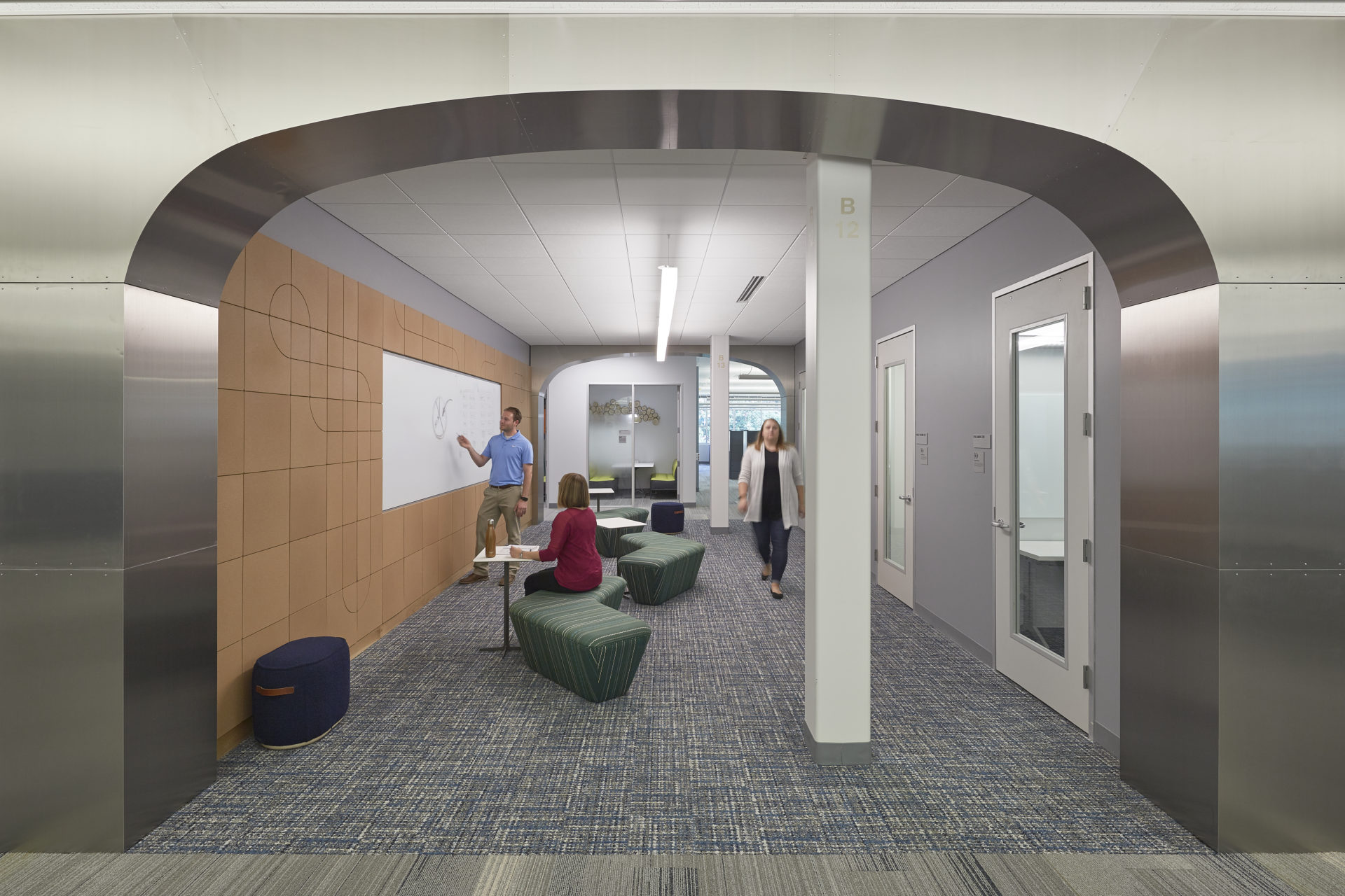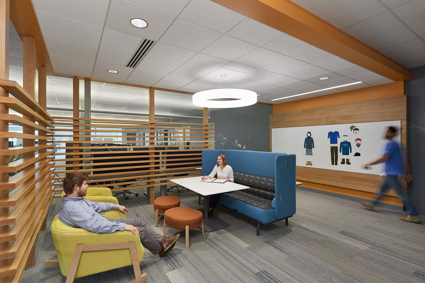 Circulation areas connect each destination and therefore take on the role of the “road trip” while collaboration areas become the rest stops throughout the day, all helping draw energy to common spaces.