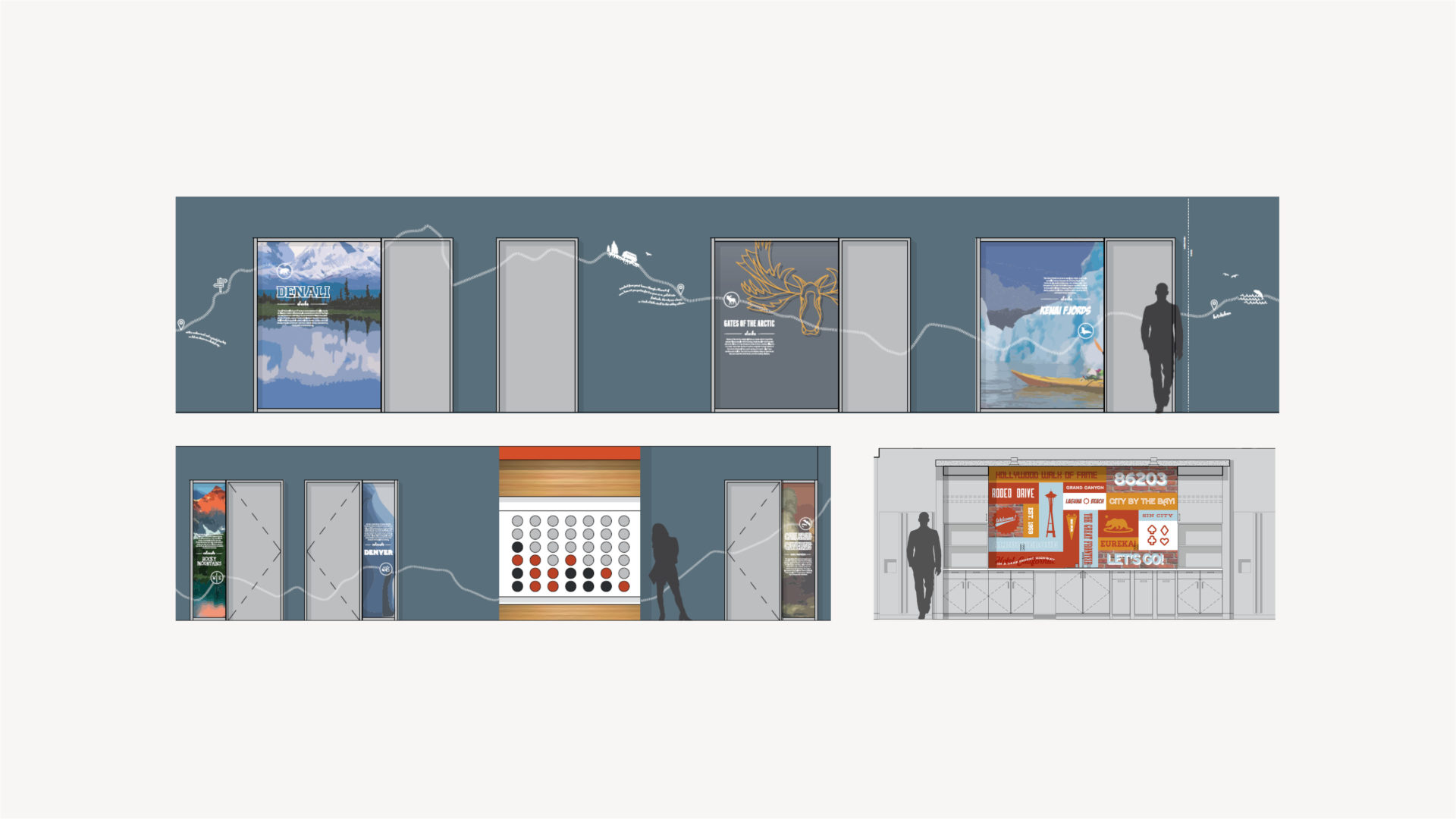 Over 50 different murals, all paying homage to the distinct look of the National Parks, play a role in placemaking and wayfinding.