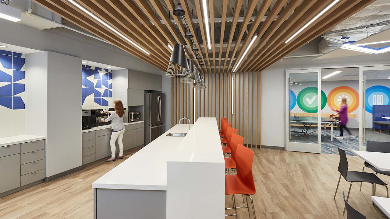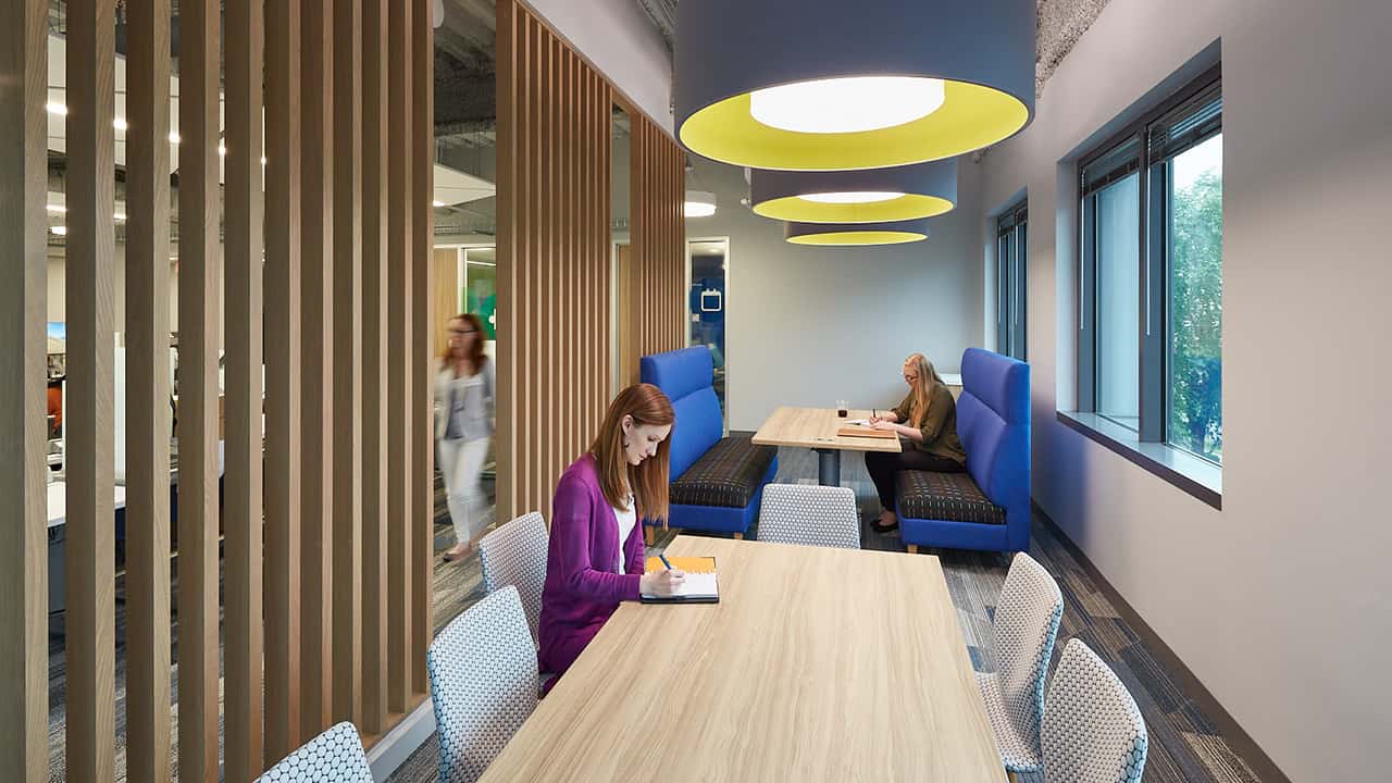 Circulation areas connect each destination and therefore take on the role of the “road trip” while collaboration areas become the rest stops throughout the day, all helping draw energy to common spaces.