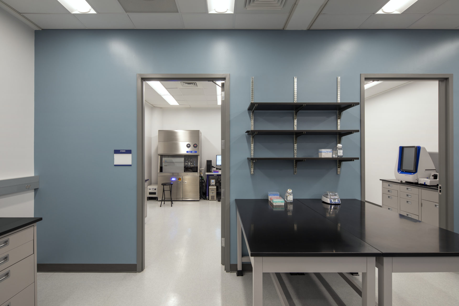 The renovation of these laboratories contain all the functional needs of the Institute including cell culture, cell sorting facilities, pcr laboratories, and accessioning needs for incoming and outgoing materials. In addition, there is an extensive central liquid nitrogen freezer farm. The upfits of each floor were constructed on an accelerated schedule in order to support the important work that these scientists are doing in support of the continuation vaccine for COVID-19. In addition to lab space, this research facility contains exam functions for subjects who are in clinical trials.