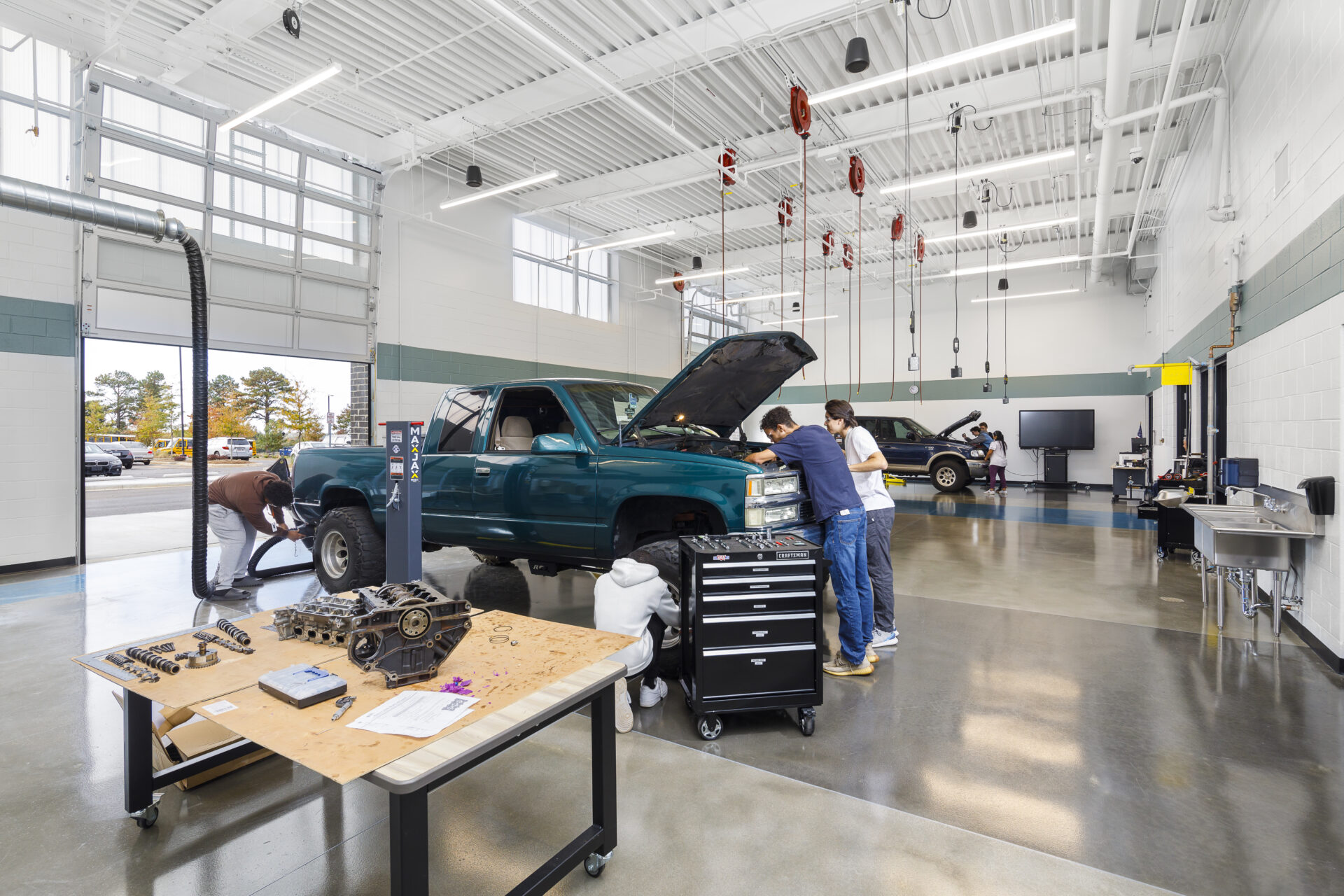 The center’s versatile design allows for the future implementation of new, innovative programs to replace existing ones should industry trends evolve. Each program is outfitted with its own specialized lab, offering a range of resources and technologies designed to facilitate student learning. Notably, the emerging automotive research lab, the first of its kind in South Carolina, provides students access to an electric vehicle trainer.