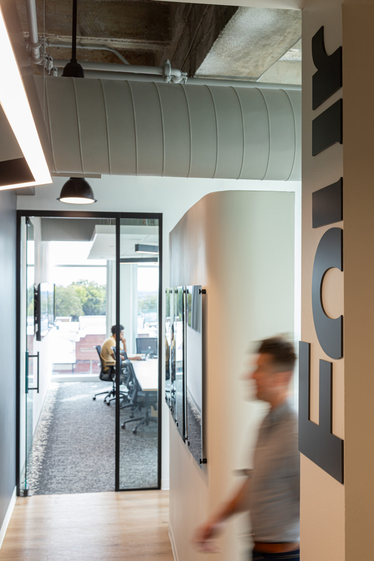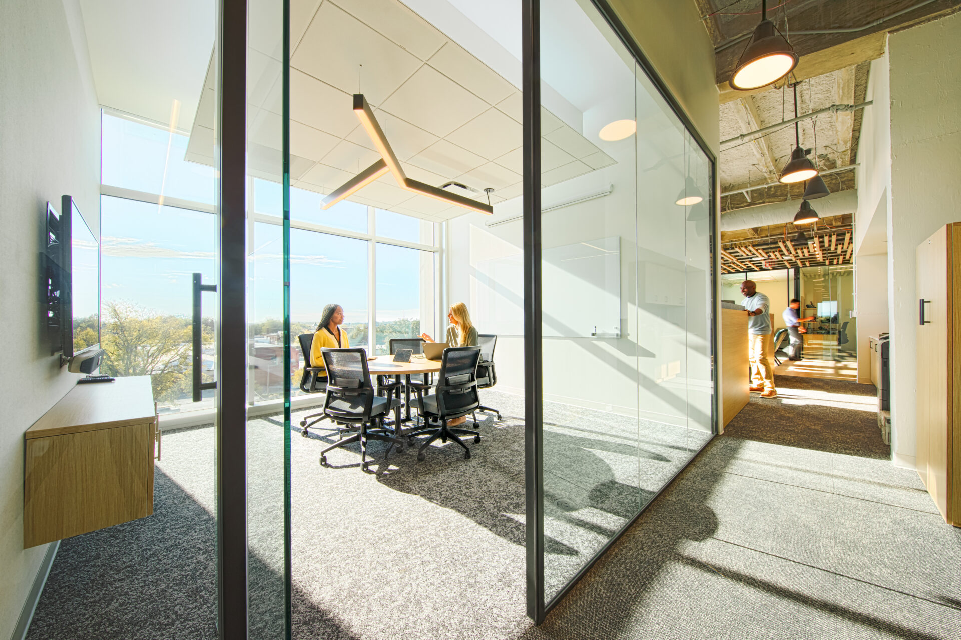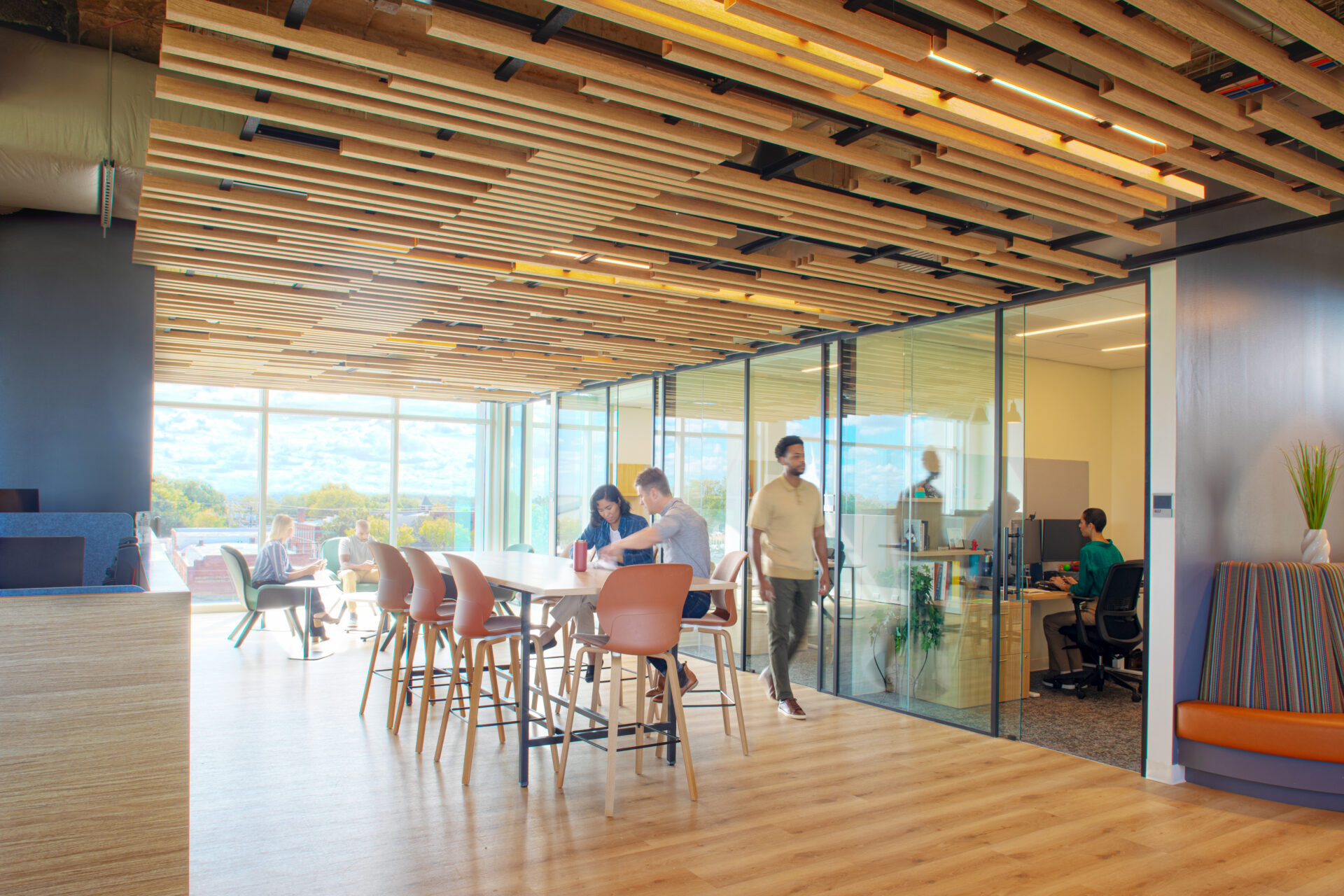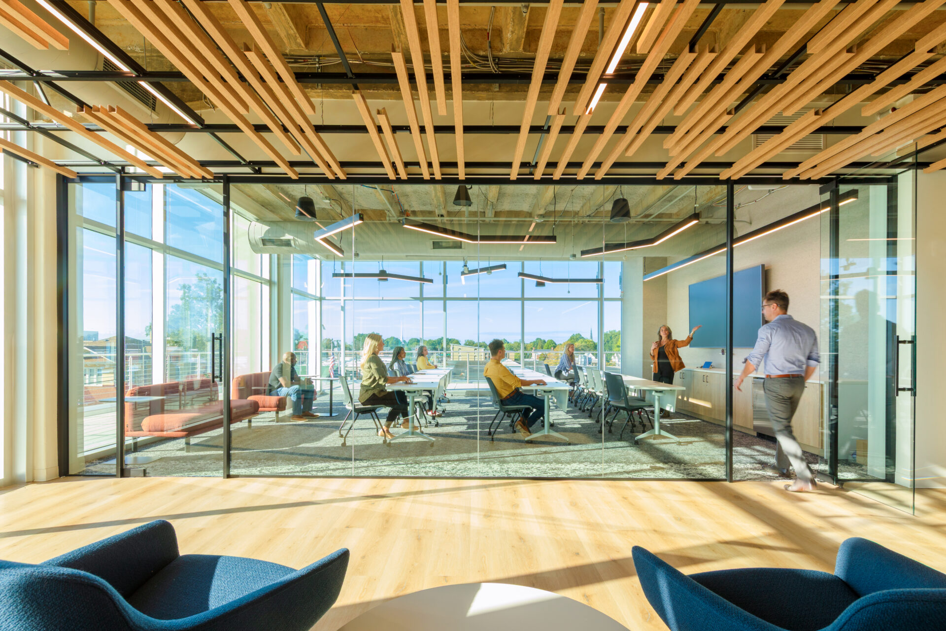 Interior spaces were opened to bring natural light deeper into the building, improving comfort and visibility. This increased transparency fosters a more inviting atmosphere while supporting productivity and overall user experience.