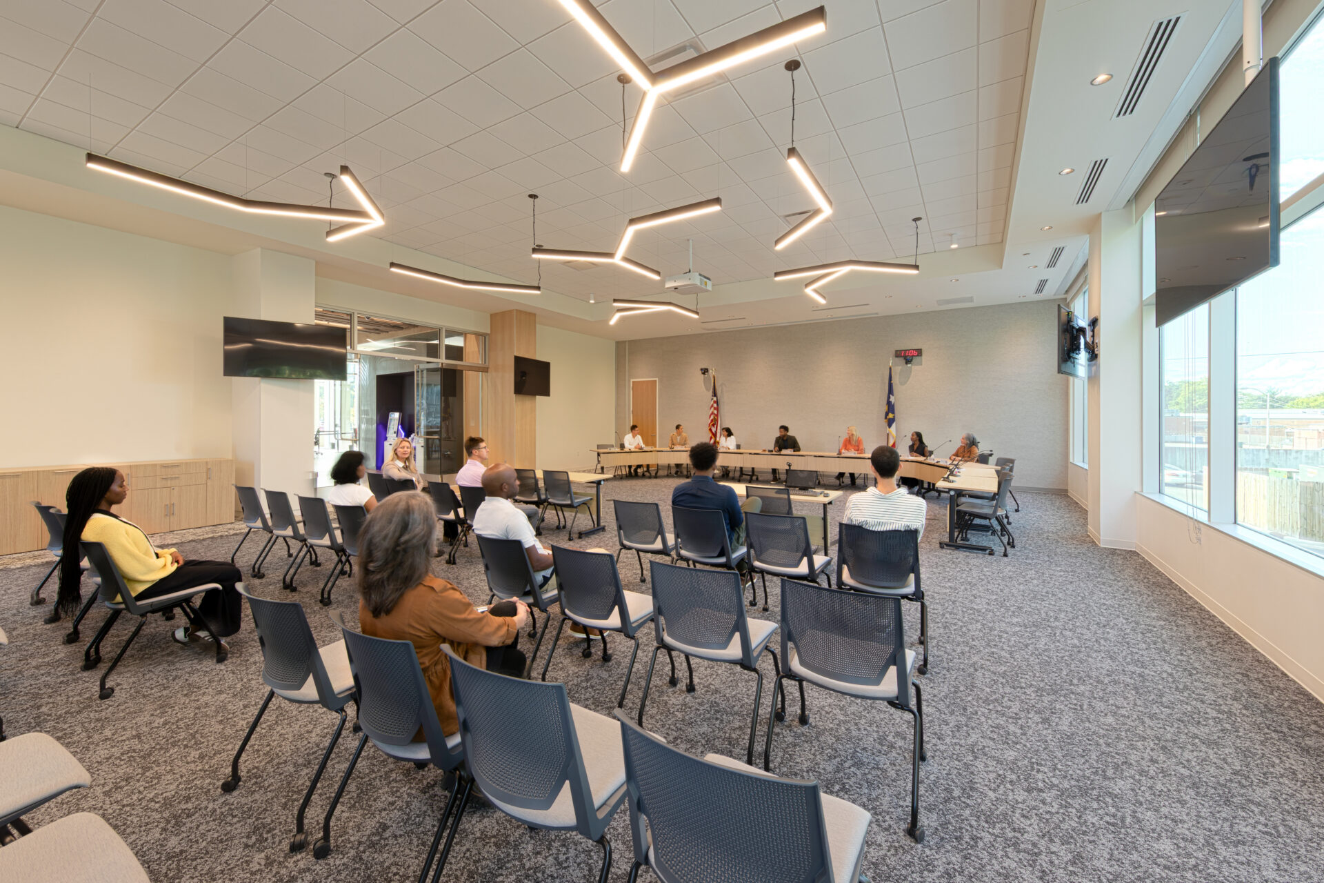 Flexible spaces throughout the building support a wide range of uses, from team collaboration to public meetings and events. These adaptable environments encourage interaction and reinforce the building’s role as an active hub for both city staff and the broader community.