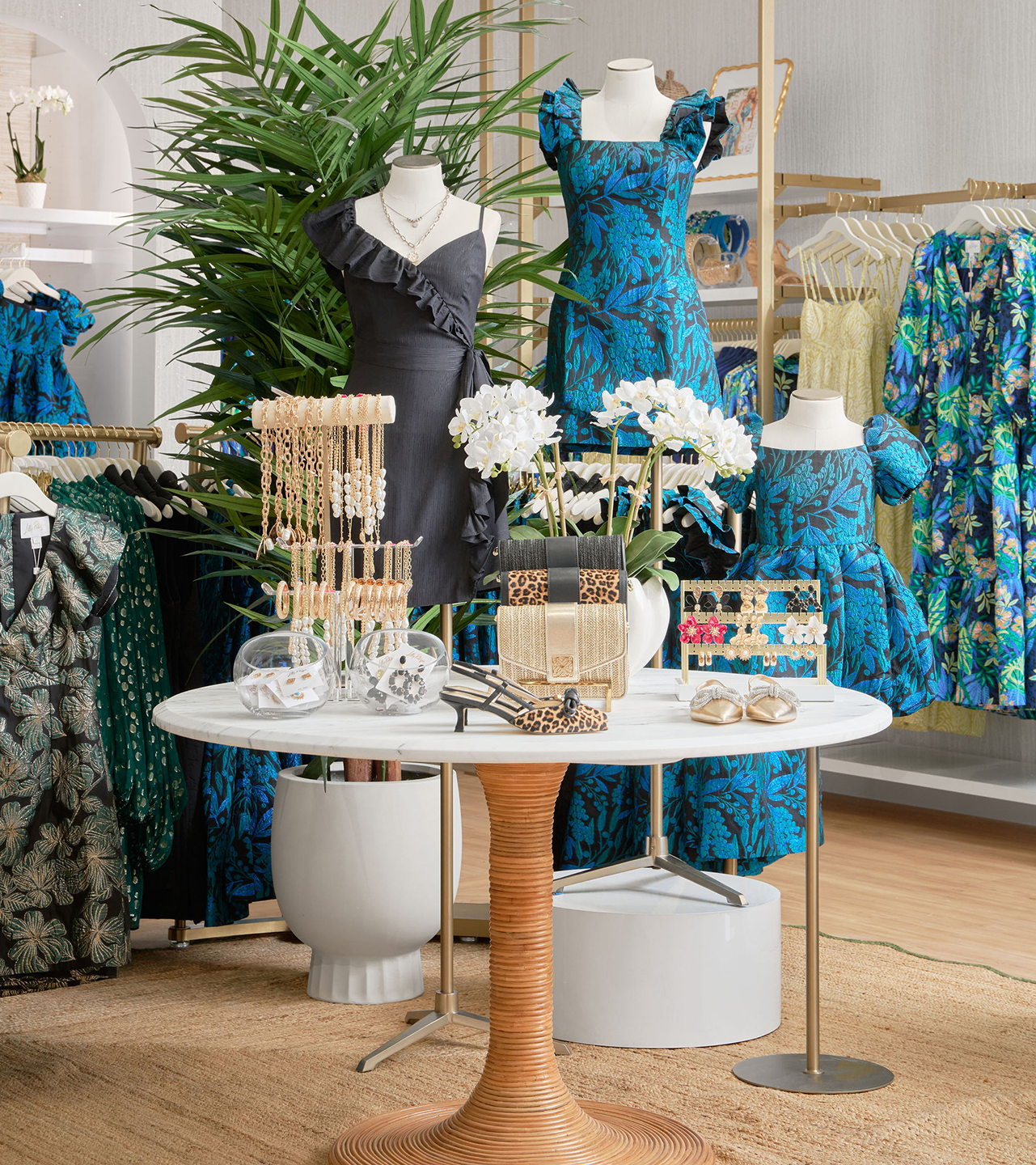 Custom-designed fixtures highlight Lilly Pulitzer’s vibrant collections while guiding the customer journey.