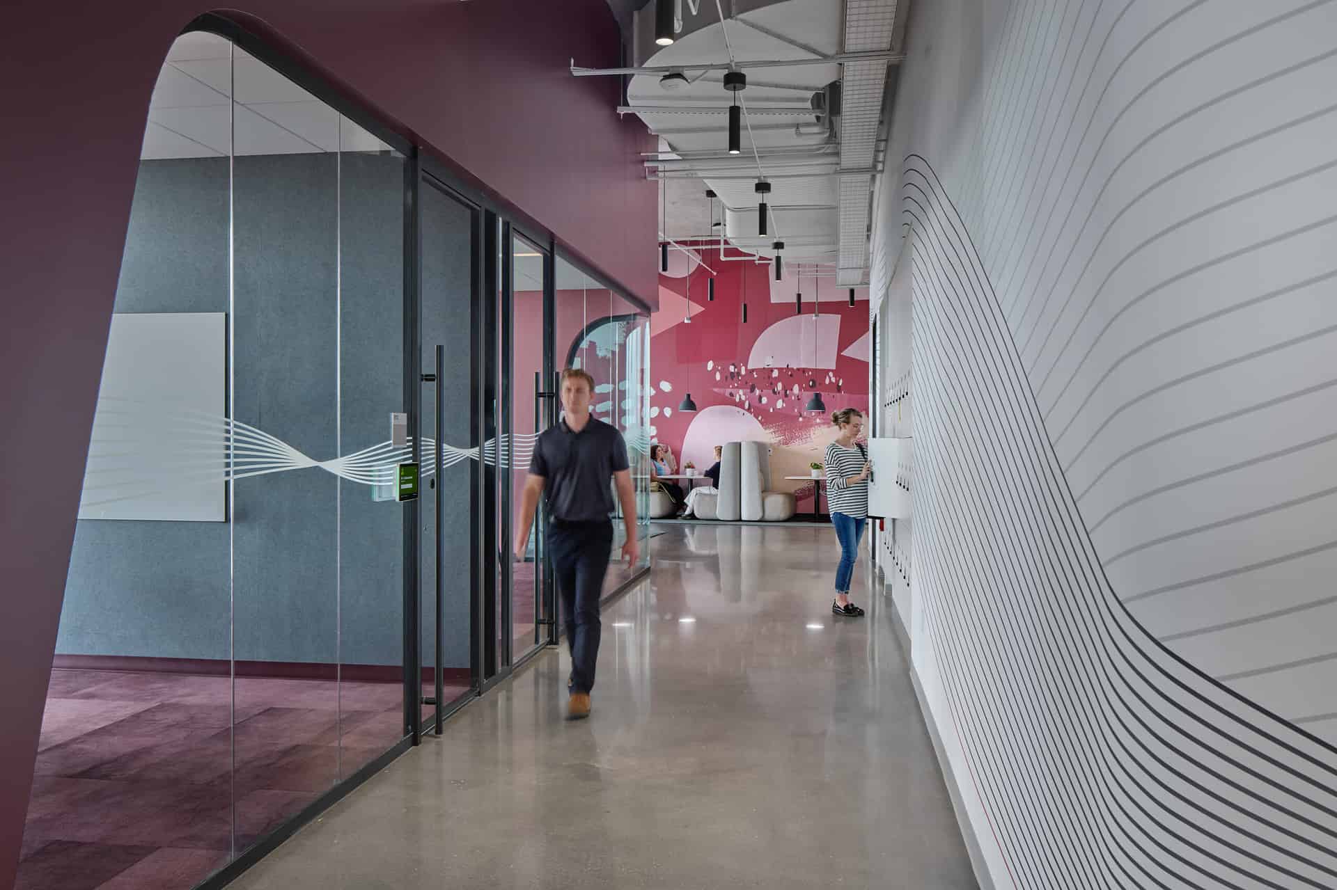 Our Brand Communication & Design team used the Northeastern brand to bring the space to life, speaking the visual language of the university, as well as incorporating references to The Line and the surrounding South End community throughout.