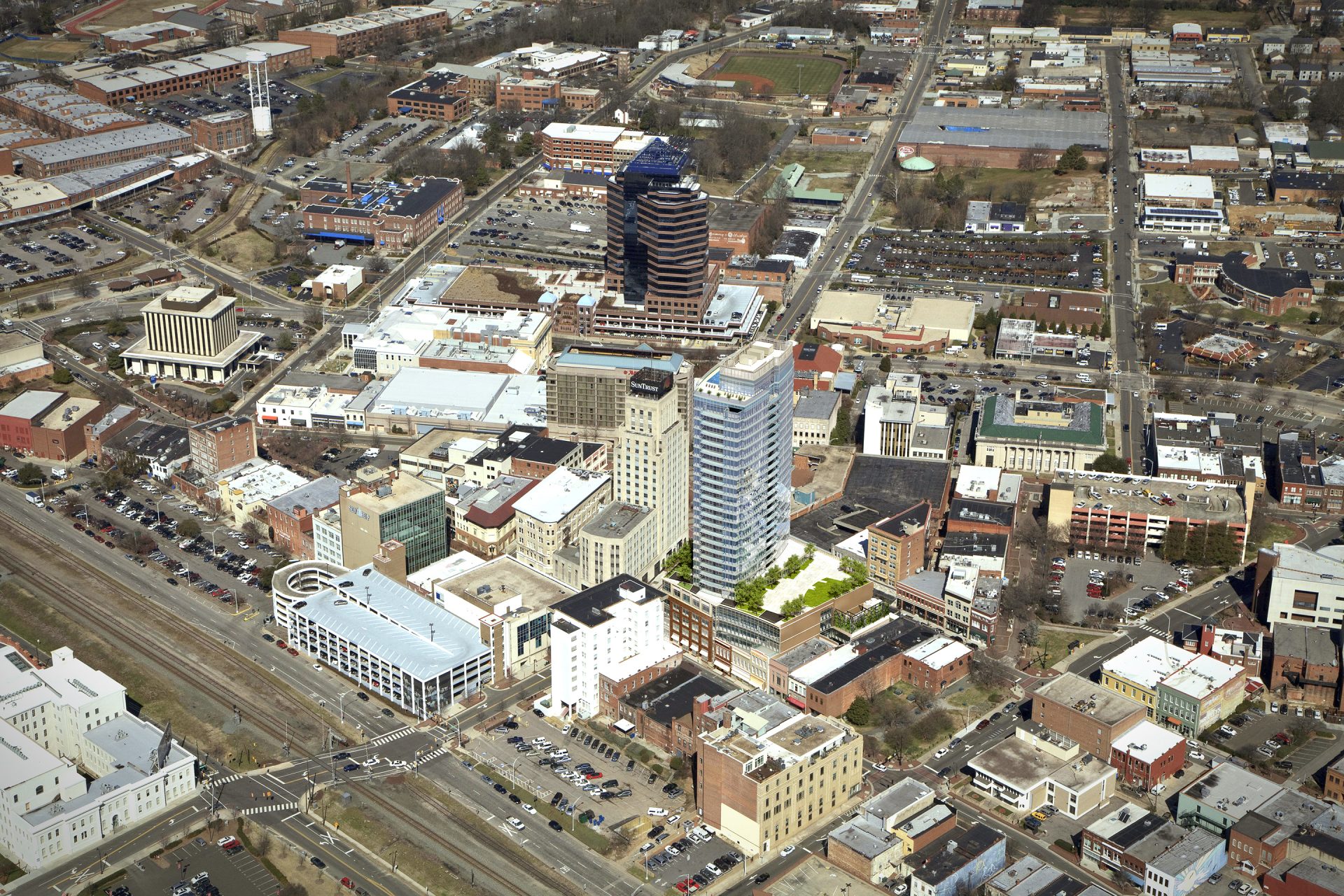 Combining the old with the new, this mixed-use building stands as a true landmark in the center of downtown Durham’s historic district.