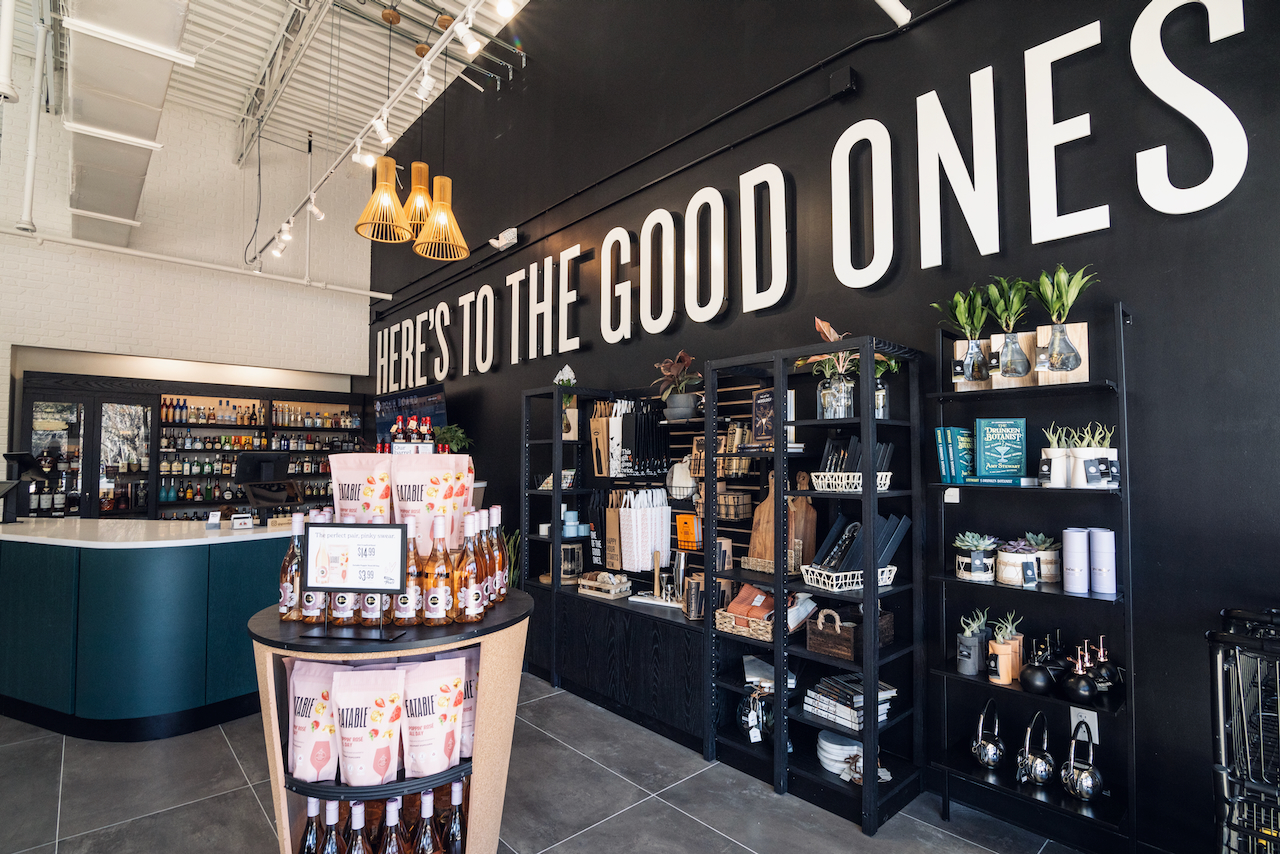 The Good Pour’s Gainesville store seamlessly blends aesthetics, functionality, and philanthropy through strategic signage, adaptable spaces, and a thoughtfully planned customer journey, creating a visually appealing and impactful shopping experience highlighting charitable giving with every purchase.