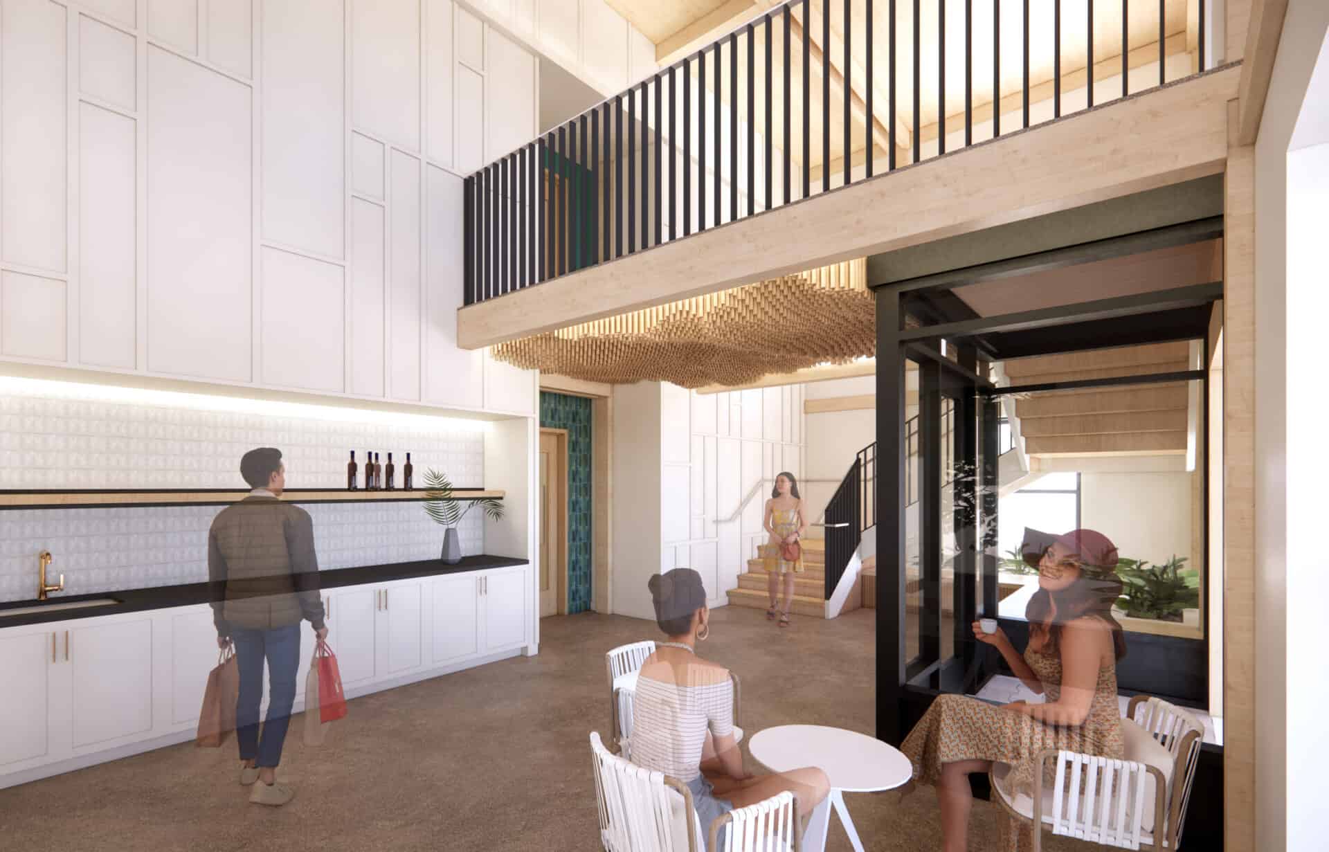 Maintaining the historic shell, the interior will be reconstructed with mass timber featuring a combination of glulam columns and beams and cross-laminated timber panels. The design intentionally leaves the wood structure exposed to highlight the regenerative heart of the project. The building will be powered by renewable energy collected from solar panels on the roof, and guests will have access to electric vehicle charging on-site.
