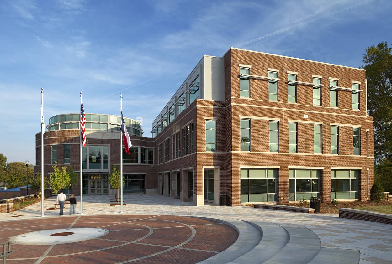 After selecting a site through a public consensus building process that included charettes and public forums, Little was asked by the Town of Wake Forest to generate a municipal master plan and subsequently create a contemporary design for the Town Hall that would complement its historic context. Housing the majority of town services, the design of this facility embraces the spirit and identity of Wake Forest and incorporates unique elements such as a town history timeline in the polished lobby floor. LEED features highlighted include air distribution, energy efficiency, site features, and building materials.